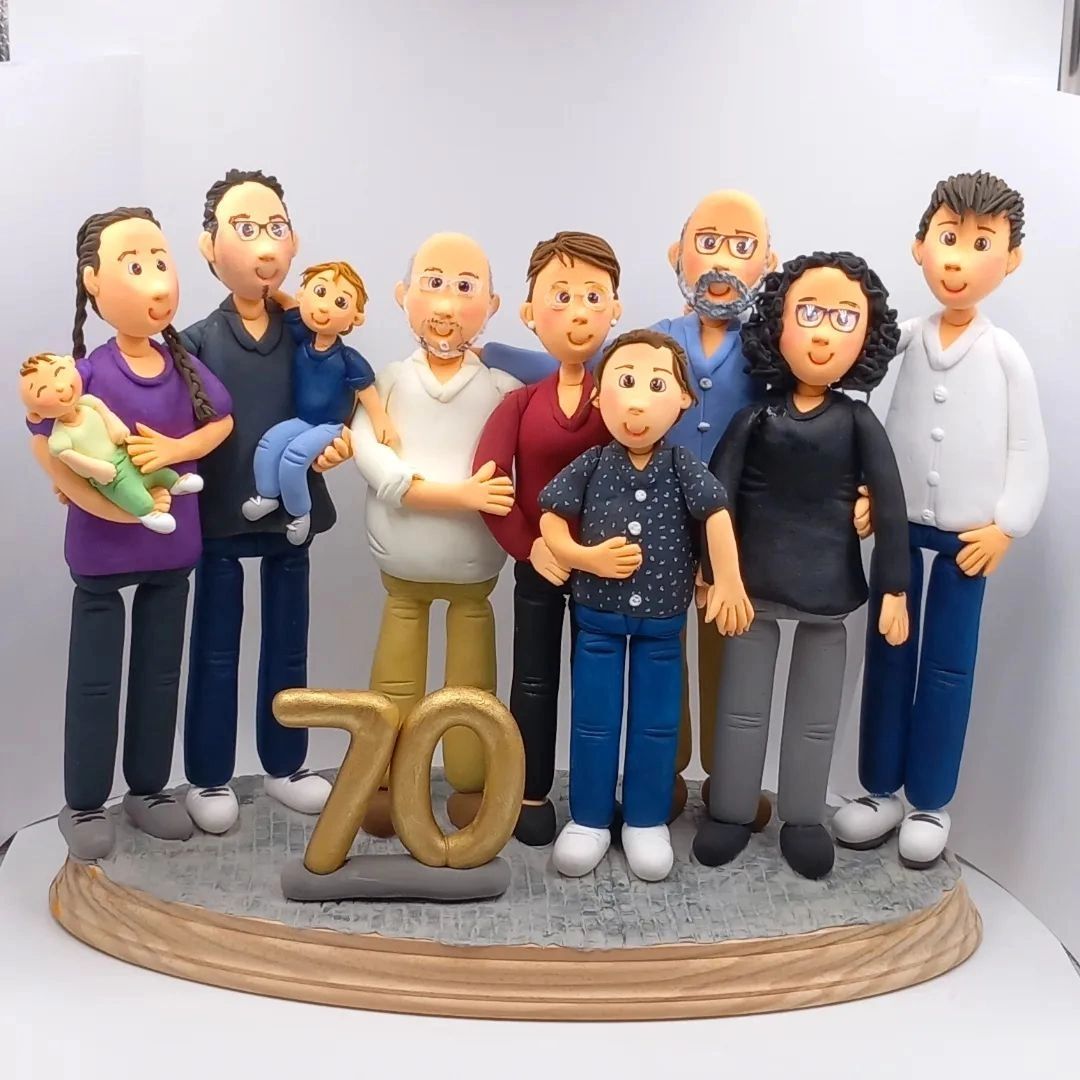 Mi especialidad son las figuras personalizadas y los muñecos bodas , que son creaciones únicas, que hago a mano, usando un material especial super ligero y muy duradero. En la sección "Preguntas frecuentes" encontrarás más información sobre las características de las figuras personalizadas.